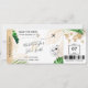 Destination Beach Mariage Carte d'embarquement Billets Gold Plane Économisez la date avec l'icône coeur et avion avec des feuilles tropicaux