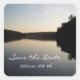 Enregistrez les autocollants de date pour les mariages avec une belle photo d'un lac paisible au coucher du soleil, le texte est entièrement personnalisable avec votre date de mariage.