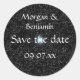Peinture d'étoiles argentées sur noir, avec un flash ajouté, avec des espaces réservés pour les noms et la date, sont imprimés sur Save the date Stickers. Choix élégant pour les mariages à thème noir et blanc. Merci pour faire du shopping à CherylsArt sur Zazzle.