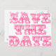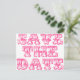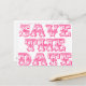 Police vintage magnifique en rose avec le message "Save The Date" remplissant tout l'espace sur le devant de la carte. Design élégant et original, il conviendra à un thème traditionnel ainsi qu'à un thème moderne et décalé. Autres couleurs disponibles dans mon magasin sous la section "Slogan".