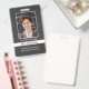Un badge photo d'identité sympathique pour l'enseignant pour l'utilisation en classe, pour que les élèves puissent voir leur super professeur sourire sans masque. Les modèles personnalisés pour le nom de l'enseignant, le grade, l'école, incluent également un modèle photo personnalisé afin que vous puissiez facilement ajouter votre propre photo. L'arrière a de l'espace pour une adresse, un numéro de téléphone et une adresse e-mail. arrière - plan de tableau noir pour cette étiquette photo pour les enseignants.