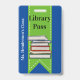 Passage de la bibliothèque de l'école amusante en bleu avec un ruban vert, courant au milieu, avec des graphiques d'une pile de livres. Personnalisez le texte personnalisé pour lire ce que vous voulez.