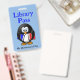 Passage de la bibliothèque de l'école amusante en bleu avec des dessins animés d'un hibou dans des lunettes tenant des livres. Personnalisez le texte personnalisé pour lire ce que vous voulez.