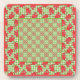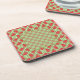 Un ensemble de six Dessous de verre à dos de liège ou Drink Mats, avec un motif de dragons rouges mignons sur un chèque vert en vichy arrière - plan, en équipe avec un motif Faux-patchwork assorti.