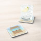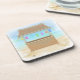 Un ensemble d'amusement de dessous de verre de liège avec la hutte de tiki et de lanternes avec l'arrière - plan de plage sablonneuse. Perfectionnez pour autour de la piscine ou à la maison de plage. Graphics© http://www.delightful-doodles.com/