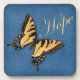Cet ensemble de 6 dessous de verre de liège a un arrière - plan de défilement en faux bleu avec un grand papillon peint en bleu, orange, tan et marron avec le mot Hope dans une police cursive élégante.