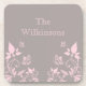Dessous de verre floral à papillon doux et appétissant Ensemble avec un arrière - plan gris pâle et muet, papillons rose clair et ornements de vigne fleurie. Cet élégant ensemble de dessous de verre en liège fleuri complèterait n'importe quel décor tout en protégeant vos meubles ! Facile à customiser, ajoutez simplement le texte personnalisé de votre choix dans les champs de texte fournis. Cliquez sur le bouton "Customiser" pour trouver d'autres options de personnalisation.