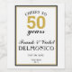 Célébrez votre anniversaire de mariage d'or en style avec ces Cheers to 50 ans mariage anniversaire fête étiquettes de vin mariage. Ces étiquettes de vin du 50e anniversaire ont une bordure en noir et or avec le texte qui dit "COULEURS à 50 ans." Customisez ces étiquettes de mariage avec vos prénoms et noms de famille et la date de votre événement et le type de vin.