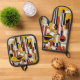 Bring the bold spirit of modern design into your kitchen with our Art Deco Oven Mitt & Pot Holder Set. Inspired by the sleek geometry and radiant energy of the Jazz Age, this duo transforms everyday cooking into an act of style.