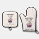 Pot-Mitt & Pot Ensemble avec une illustration ludique d'un design de chat sur le thème de l'anniversaire qui est mignon, fantaisiste et humoristique.