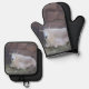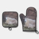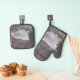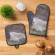 Un gant et un porte-pot au four avec une photo de chèvre.