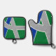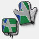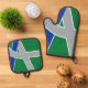 Pot Holder Set avec un design avec le drapeau d'Albany, Oregon. Un drapeau vert, gris et bleu