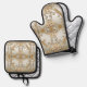 Ensemble De Gant De Cuisine Et De Manique Fleurs blanches dorées