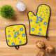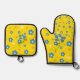 Ensemble De Gant De Cuisine Et De Manique Fleurs jaunes bleues