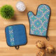 Ensemble De Gant De Cuisine Et De Manique Turquoise Tranquility pattern