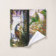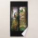 La reproduction vintage magnifique de fenêtre en verre teinté de Nouveau Tiffany d'art des oiseaux de paon et de perroquets dans une volière complètement des glycines et d'autres fleurs et baies, avec un voilier en dehors de la navigation à l'arrière-plan, est sur cet ensemble de serviette de Bath. L'image est public domain dû à copyright expiré.