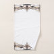 La peinture vintage merveilleuse de beaux-arts d'un cheval et d'un cavalier de Sleigh passant une scène de pays avec des fermes et un étang un jour neigeux d'hiver, par Durrie, est sur cet ensemble de serviette de Bath. L'image est public domain dû à copyright expiré. Le collage est par moi.