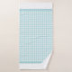 Serviette élégante dressée dans un motif à carreaux bleu et blanc en vichy aqua, avec des graphiques d'un ruban d'aqua sur la serviette de bain. La serviette est faite en bleu aqua massif avec un grand monogramme blanc d'une lettre prêt à personnaliser. Idéal pour un cadeau ou pour votre propre salle de bain redo.