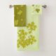 Serviette fleurie cerise en or, olive, citron vert, couleurs chartreuse.