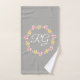 Cet ensemble de serviettes grises est vraiment joli pour votre décoration de salle de bain shabby chic. Cet ensemble de serviettes présente un motif de fleurs roses et jaunes de style vintage sur fond gris. Personnalisez la serviette de toilette avec votre propre monogramme. Cet ensemble de serviettes ferait un cadeau de crémaillère attentionné.