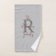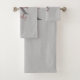 Cet ensemble unique et personnalisé de serviette de bain, serviette de toilette et gant de toilette est orné d'un fond gris clair, d'un monogramme gris moyen classique et du nom de famille en écriture burgundy calligraphique. C'est un design moderne, contemporain et tendance minimaliste. Il est facile à personnaliser, il suffit de modifier ou de supprimer le monogramme et le nom de famille exemples. Vous pouvez acheter l'ensemble ou les articles individuels. Tous droits réservés © 2024 Alan & Marcia Socolik.