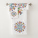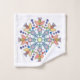 Formes géométriques de cercles, carrés, triangles, ovales, coeurs & lignes formant un motif de fleurs aux couleurs pastel.