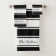 Serviette de bain minimaliste et chic. Ce design présente un thème rayé noir et blanc moderne avec votre texte personnalisé inclus dans le coin inférieur droit de chaque article. Ce bel ensemble comprend un linge de toilette, une serviette de bain et une serviette de bain qui peuvent être achetés ensemble ou séparément. Ce set de serviettes ferait un grand cadeau pour une douche nuptiale, un anniversaire ou pour une fête de ménage.