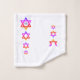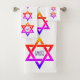 ETOILE moderne et colorée de DAVID MONOGRAM ensemble de serviettes de bain, montrant une série de couleur vibrante Star de David dans un motif descendant contre un arrière - plan blanc. À l'intérieur de la plus grande étoile est un MONOGRAMME PERSONNALISABLE. Vous aurez le choix entre une large sélection de vêtements, de cartes, de décors, de fournitures de fête et de cadeaux de marque Berean Designs. Autres couleurs disponibles.
