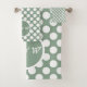 Un motif moderne gris et blanc à pois décore l'ensemble de serviettes. Modifiez la couleur de remplissage et les initiales pour personnaliser le cadeau de douche de mariage. En outre, changez la police, la couleur de police ou la taille de police. N'oubliez pas de modifier également la coloration de la forme. Pour obtenir de l'aide sur la personnalisation des couleurs et du design, contactez https://t.me/KBMD3signs_chat.