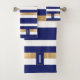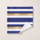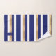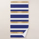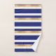 Serviette de bain moderne bleu, blanc et or, avec un motif rayé horizontal audacieux. Plaque décorative bleu et or, avec un monogramme blanc personnalisé d'une lettre. Personnalisez la lettre en fonction de vos besoins. Un décor de bain à remous est disponible.