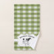 Ajoutez une touche rustique à votre décor de bain avec un ensemble de serviettes de bain Green Buffalo Plaid Farm Cow. Le design des serviettes comprend une vache de ferme sur une étiquette élégante et du texte personnalisé pour que vous puissiez personnaliser avec votre nom de famille contre un arrière - plan motif en vichy. Autres éléments de décoration disponibles avec ce design.