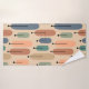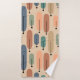 Ce kit de serviettes est muni d'un linge de pêche, d'une serviette turquoise et d'une serviette de bain au design moderne du milieu du siècle de longs ovales en pêche, vert, bleu, turquoise et marron clair avec des lignes noires avec des cercles sur les extrémités.