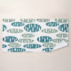 Cette serviette de bain est munie d'une serviette de bain avec un motif répétitif d'ovales en bleu rétro avec des ovales blancs éparpillés le tout sur un champ de blanc, un linge bleu clair et une serviette de bain bleu foncé.