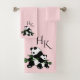 Panda mama est assis à manger du bambou pendant que bébé fait comme bébé panda voit