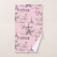 La Tour Eiffel, les mots "Joyeux Noël" (Joyeux Noël en français), Paris en typographie vintage, et les étiquettes français vintages pour le champagne et le cacao et les sprigs de houx vintage en noir sur un joli rose font un joli et intéressant ensemble de serviettes de bain de Noël, pour votre décor maison de vacances à thème français.