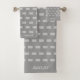 Elégant gris argenté formes géométriques ensemble de serviettes de bain. Le texte du nom peut être personnalisé.