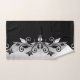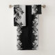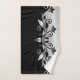De magnifiques fleuris et des panaches feuillues dans ou sur l'argent "métallique" sont magnifiquement spectaculaires contre un noir comme arrière - plan de nuit dans ce design élégant, généré par ordinateur. L'argent, comme vous le savez peut-être, symbolise la richesse, le succès et le pouvoir tandis que le noir est l'exemple de la formalité, de l'élégance, de l'allure et du mystère. Rien d'étonnant à ce que ces deux-là soient l'une des combinaisons de couleurs "power". Ce joli set de serviettes est un ajout spectaculaire et élégant à votre décor de salle de bain.