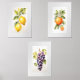 Cet ensemble de trois estampes murales de fruits évoque des climats ensoleillés