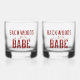 Verres à whisky cool pour ceux qui vivent la vie à la campagne avec le texte "Backwoods Babe" en rouge foncé distressé et des fioritures élégantes