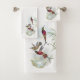 Les beaux-arts botaniques vintages magnifiques de longs oiseaux et feuille coupés la queue rouges exotiques de colibri sont sur cet ensemble de serviette de Bath. L'image est public domain dû à copyright expiré.