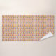 Ensemble serviette et gant de toilette avec motifs géométriques colorés en orange, violet et jaune. La serviette est accrochée à une tringle, tandis que le gant de toilette est plié sur une surface.