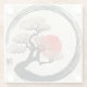 Enso Circle and Bonsai Tree on Canvas Glass Coaster
