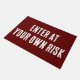 Enter at Your own Risk. Warning on a doormat. Warning welcome mat for the front door..