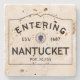 4" x 4" natural Turkish travertine stone coaster with Entering Nantucket sign. Cork backing.