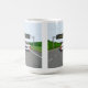 Entering New Jersey. Increase Medication Funny Cartoon Coffee Mug features a funny cartoon with a car and its driver about to get on the New Jersey Turnpike. A sign overhead warns, "Entering New Jersey. Increase Your Medication." The state of New Jersey is not for wimps. This mug makes a great gift for people living in the Garden State or anyone who's been there, This comic art by Avey Jones is sure to bring a laugh of recognition.