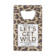 Ouvre-bouteilles Enterrement de vie de jeune fille dans notre design impression animale guépard "Faisons la fête". Faites défiler la page pour voir tous les articles assortis dans ce design - parfait pour votre week-end d'enterrement de vie de jeune fille, fête au bord de la piscine ou week-end.