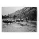 Entraînement des mules de paquet à travers une rivière. Photographiez par Charles Belden sur le ranch de fourche près de Meeteetse, Wyoming.