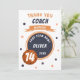 Carte d'entraîneur moderne de Merci de basket-ball. Une carte d'entraîneur moderne et personnalisée, avec un ballon de basket, le nom de l'entraîneur sur le ruban, le nom de l'équipe, le nom et le numéro du joueur. Vous pouvez modifier n'importe quel texte sur la carte.