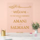 Panneau acrylique minimaliste d'entrée musulmane Mariage islamique avec Bismillah rahman raheem en calligraphie arabe.