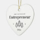 First Christmas as an entrepreneur heart ornament. Elegant porcelain ceramic holiday ornaments in white with black lettering. Featuring Christmas trees and stars.